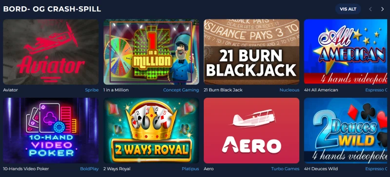 For spillere som liker korte, intense runder leverer kategoriene Bord- og Crash-spill og Lucky Games akkurat den farten. Crash-titler som Aviator, AviaStar, Aviatrix, Balloon/Ballonix og rakettstilen Astro bygger på stigende multiplikatorer og timing-baserte uttak, med auto-cashout-funksjoner som tilfører struktur til strategien din.